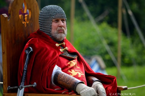 Roger de Lascy, comte de Chester, descendant du chevalier Hugh de Lassy (14) qui partit avec son frère Roger, aux côtés de Guillame le Conquérant, à la bataille d'Hastings en 1066. Fidèle lieutenant du Roi Richard, il devient gouverneur de Château-Gaillard. Ses armoiries sont de gueules aux trois léopards d'or passants, comme son seigneur.